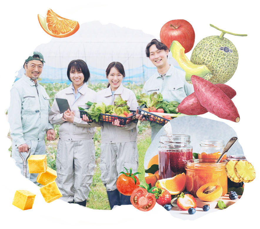 二葉フードソリューションズでは、農家の皆さまとの強いパートナーシップのもと、市場に出せない規格外品やキズものも含めて農産物を買い取り、加工品として再利用しています。これにより、生産者の作物ロスを削減しつつ、お客様には高品質かつリーズナブルな製品をお届けしています。フードロス削減を方針に掲げ、単なる仕入れではなく、規格外品に新たな価値を見出して需要を生み出す活用方法を提案・商品化。豊富な企画力と業界ネットワークを活かし、一次産業と直接つながる仕入れ体制を通じて、持続可能な食の流通とフードロス削減を実現しています。