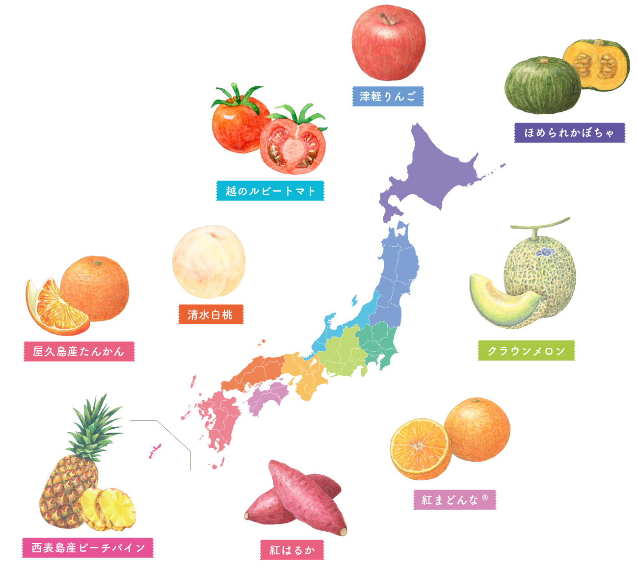 契約農家からの直接購入を通じて、価格のメリットを最大化し、安定的に農産物を調達しています。後継者不足や天候不順などのリスクがあっても、国内産農産物の確保が可能です。さらに、国内各地や離島に至るまで足を運び、希少価値の高い農産物を発掘。屋久島たんかんや沖縄のアララガマ農園パインなど、ユニークで価値ある素材を商品化し、お客様に提供しています。